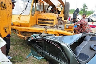 Akhirnya apa yang dikatakan kemalangan maut terjawap......Sebuah kereta wira terperosok dibawah kren...